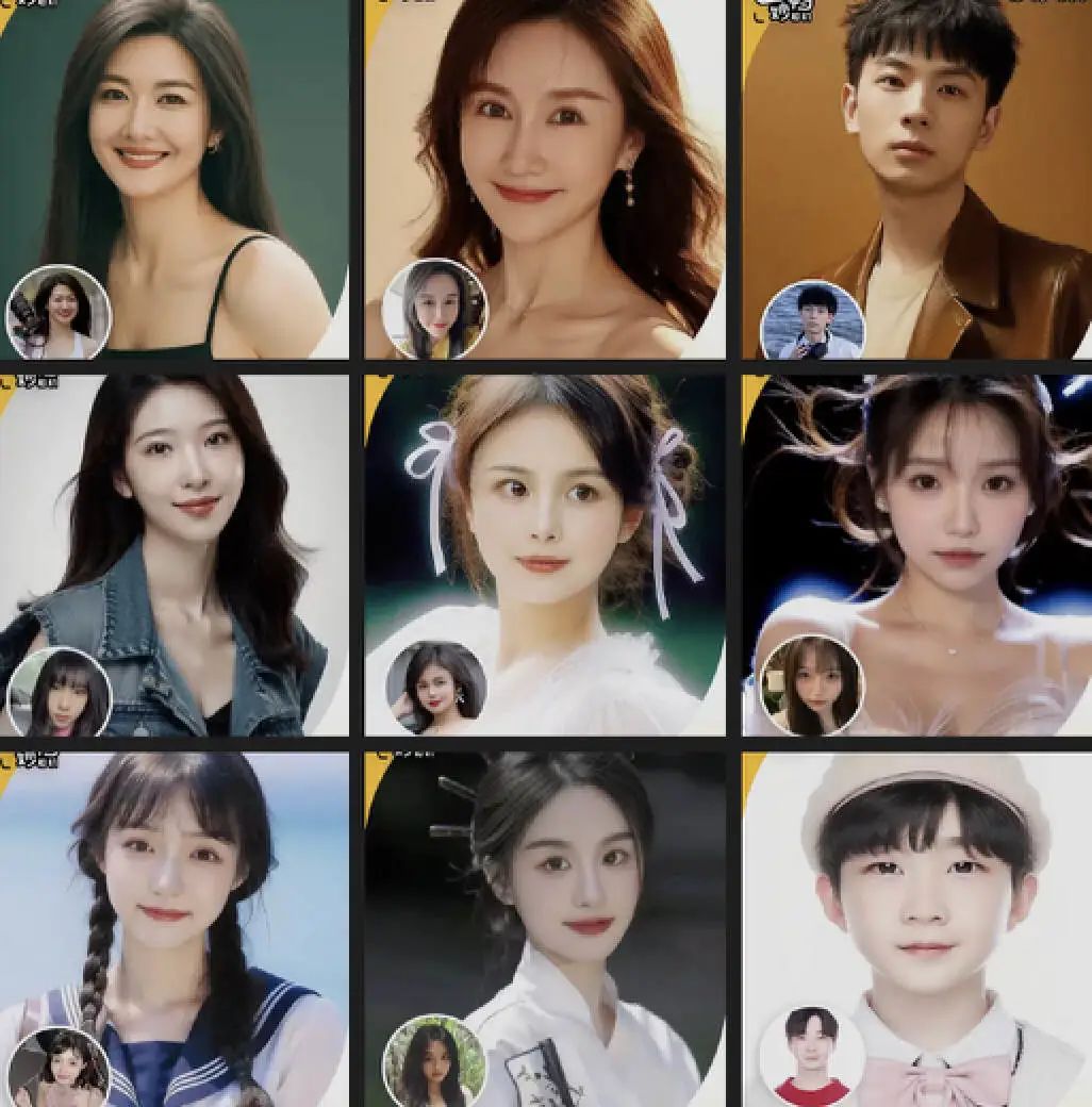 “應(yīng)該是SD做的,結(jié)合LoRA人物模型,固定幾個(gè)人物模板,讓用戶上傳20張照片用來練LoRA,再用生成的LoRA套入大模型里做好的模板里換臉。”龔具仁分析。