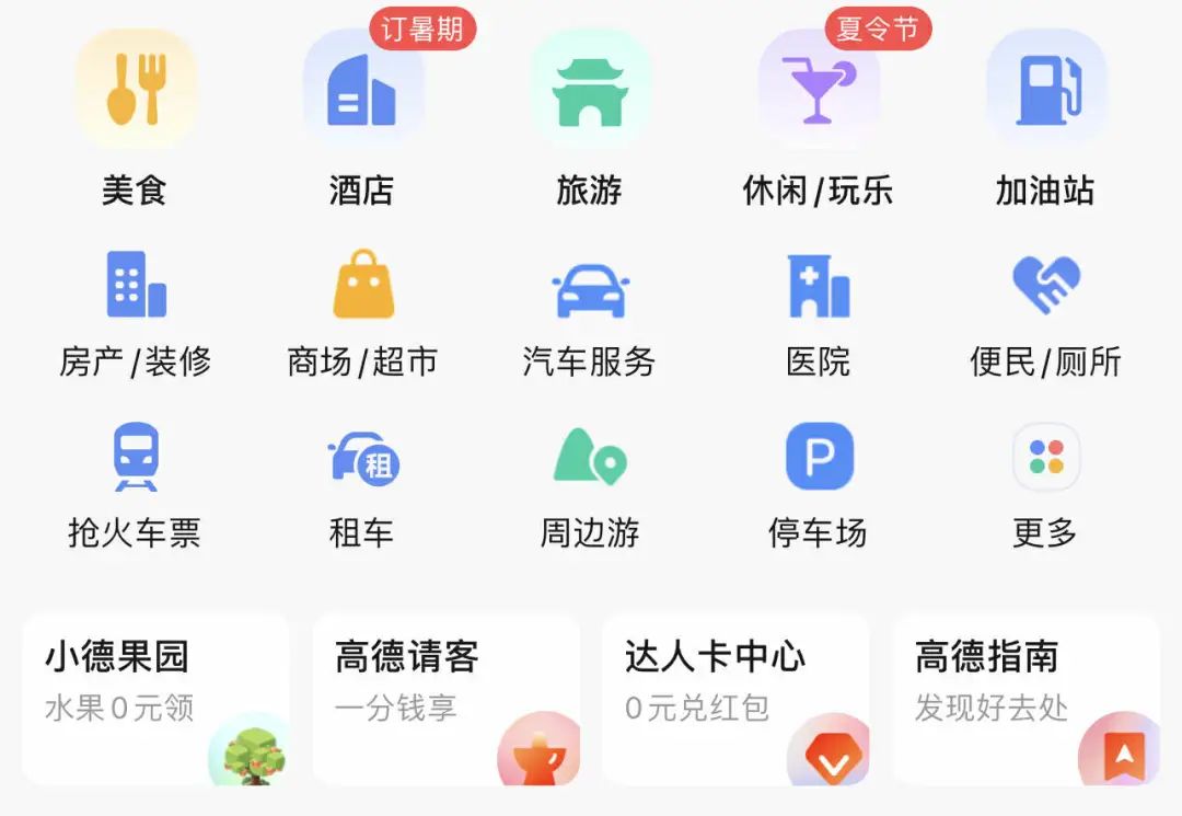 今年3月,阿里旗下幾經調整的到店業(yè)務“口碑”,并入了阿里系流量排名第三的高德地圖。現在的高德APP,和美團首頁沒有太大區(qū)別,可以團購美食(到店服務)、訂酒店、訂門票、搶火車票等。