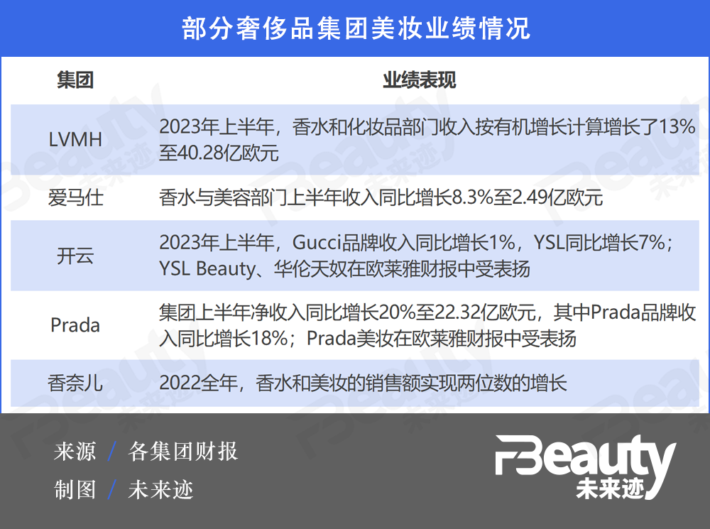 不過,愛馬仕、香奈兒、Prada的美妝業(yè)務(wù)同樣增長勢頭良好。