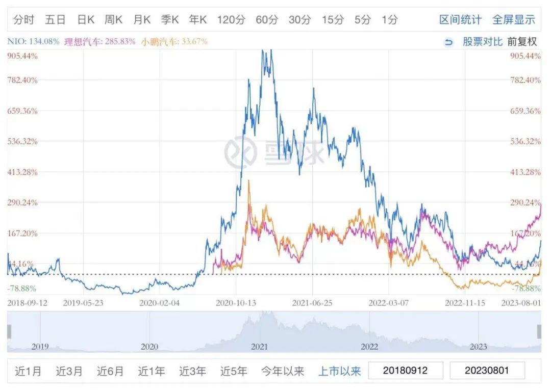曾經(jīng),蔚來、小鵬、理想成為大浪淘沙的新勢力中,銷量和市值都進入頭部的頂流,有了“蔚小理”這一合稱,三位創(chuàng)始人彼此也以兄弟相稱。