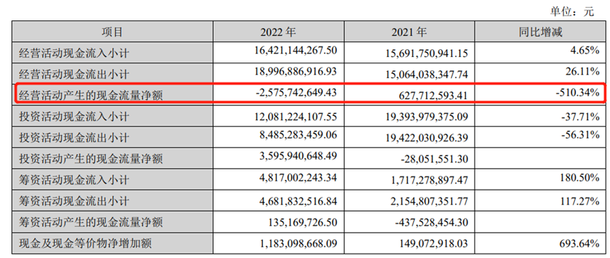 值得注意的是,因平臺(tái)貿(mào)易現(xiàn)金流出,威孚高科2022年經(jīng)營(yíng)活動(dòng)產(chǎn)生的現(xiàn)金流量?jī)纛~為-25.76億元,同比下滑510.34%。