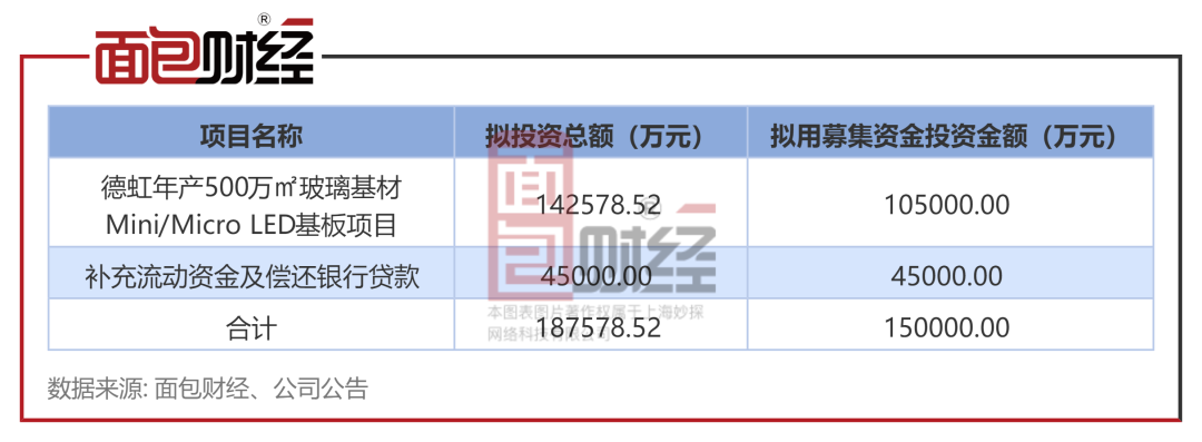 此次定增,沃格光電擬發(fā)行不超過(guò)5135.48萬(wàn)股,募集資金總額不超過(guò)15億元。其中,公司擬投入10.5億元用于德虹年產(chǎn)500萬(wàn)㎡玻璃基材Mini/Micro LED基板項(xiàng)目,4.5億元用于補(bǔ)充流動(dòng)資金及償還銀行貸款。