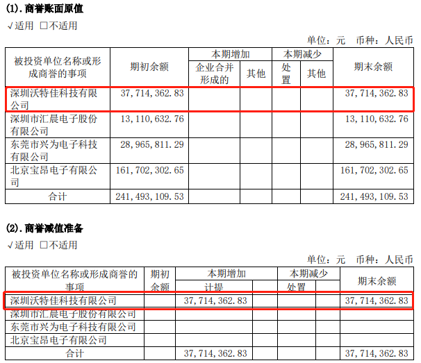 其中,沃格光電對(duì)其子公司深圳沃特佳(深圳沃特佳科技有限公司)商譽(yù)全額計(jì)提減值準(zhǔn)備約3771.44萬(wàn)元。