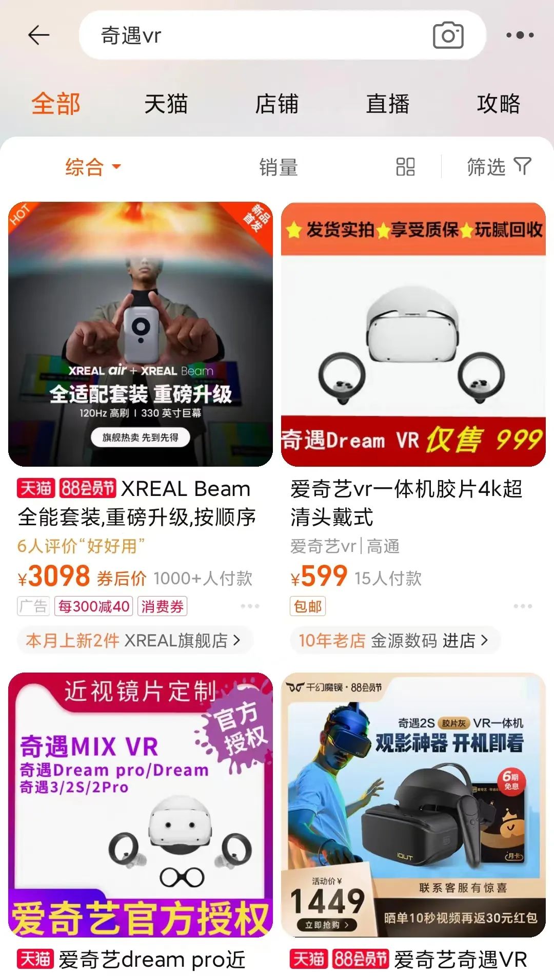 如今,奇遇VR在天貓、京東等電商平臺(tái)上的店鋪已經(jīng)關(guān)閉,搜索不到了。