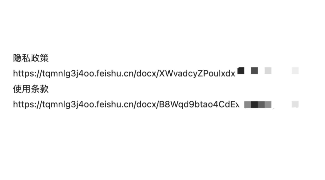 有趣的是,由于蘋果應(yīng)用商店的規(guī)定,所有上架的App都必須包含詳盡的《用戶協(xié)議》和《隱私政策》等開發(fā)者信息。對此,許多“FleeceGPT”為了節(jié)省精力,選擇將這些內(nèi)容托管在諸如騰訊文檔和飛書等云辦公平臺上,而非成本更高的自建網(wǎng)站。