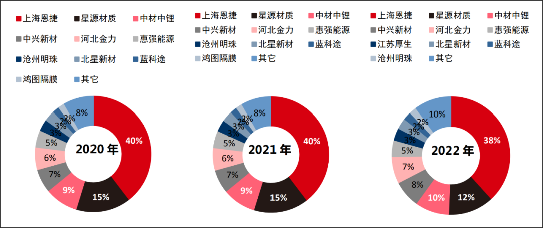 圖:國內(nèi)鋰電池隔膜出貨量份額,來源:中信證券