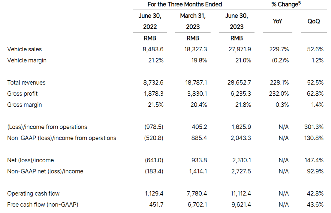 理想汽車2023年第二季度部分業(yè)績數(shù)據(jù),截圖自財報
