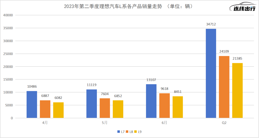 2023年第二季度理想L系各產(chǎn)品銷量走勢,數(shù)據(jù)來源于公開數(shù)據(jù),連線出行制圖