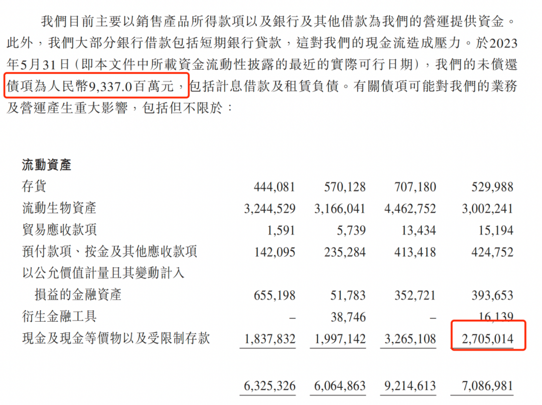 截至2023年5月31日,德康農(nóng)牧的未償還債項(xiàng)高達(dá)93.37億元,而公司的現(xiàn)金及現(xiàn)金等價(jià)物僅有27.05億元。