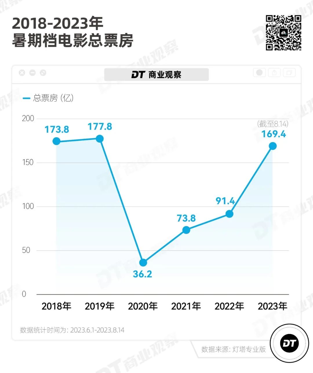 但到了今年,從6月1日至8月14日,暑期檔票房已經(jīng)接近170億。