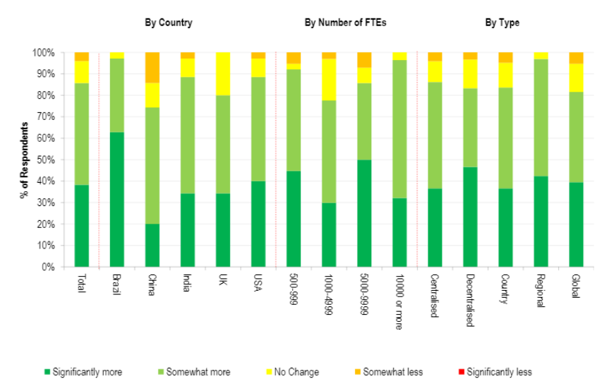 從進(jìn)一步細(xì)分的市場來看,未來12個(gè)月美國廣告活動(dòng)的增長率為7.0%(低于上次調(diào)查的9.5%)、英國為+11.8%(相對(duì)較為穩(wěn)定)、印度為+10.1%(高于1月份調(diào)查的6.1%)、中國為+16.1%(高于1月份調(diào)查的10.6%)以及巴西+7.7%(低于1月份調(diào)查的15.4%)。