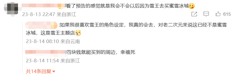 比如推出印有雪王形象的周邊產(chǎn);與網(wǎng)易旗下《蛋仔派對》的蛋仔“組團出道”;又比如之前網(wǎng)友們熱議話題“雪王變黑了”,就是蜜雪冰城借雪王形象進行桑葚新品宣傳。