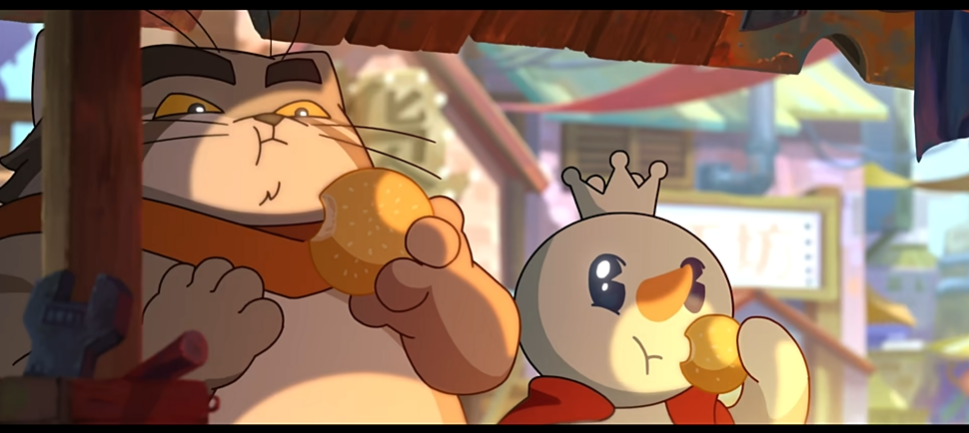 從PV可以看出故事情節(jié)偏套路化,但PV中開口說話的雪王仍令人意外,略顯稚嫩的少年嗓音搭配正義凜然的臺詞,讓動畫觀眾不由得生出了熱血番男主的既視感。鏡頭一轉(zhuǎn),又是兔師傅和雪王品遍各路美食的畫面,對于出鏡的飲品,觀眾們也自動對應了蜜雪冰城旗下產(chǎn)品。