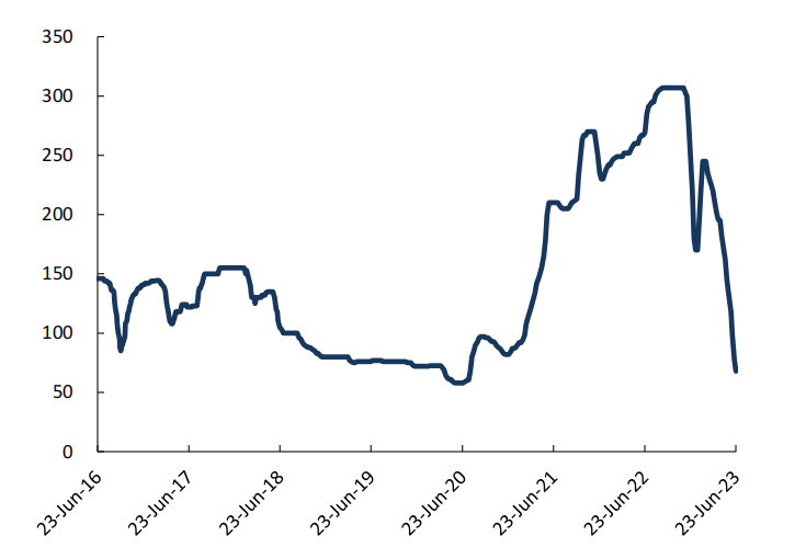 但經(jīng)過價格高點后,伴隨著產(chǎn)能的增加,硅料也同碳酸鋰一樣“跌下神壇”,據(jù)硅業(yè)分會6月數(shù)據(jù)顯示,國內(nèi)N型料成交均價為7.39萬元/噸,周環(huán)比降幅為8.2%;單晶致密料成交均價為6.64萬元/噸,周環(huán)比降幅為8.29%,已經(jīng)擊破企業(yè)平均生產(chǎn)成本,減產(chǎn)還是停產(chǎn),已經(jīng)成為了硅料企業(yè)降低經(jīng)營壓力的選擇題。