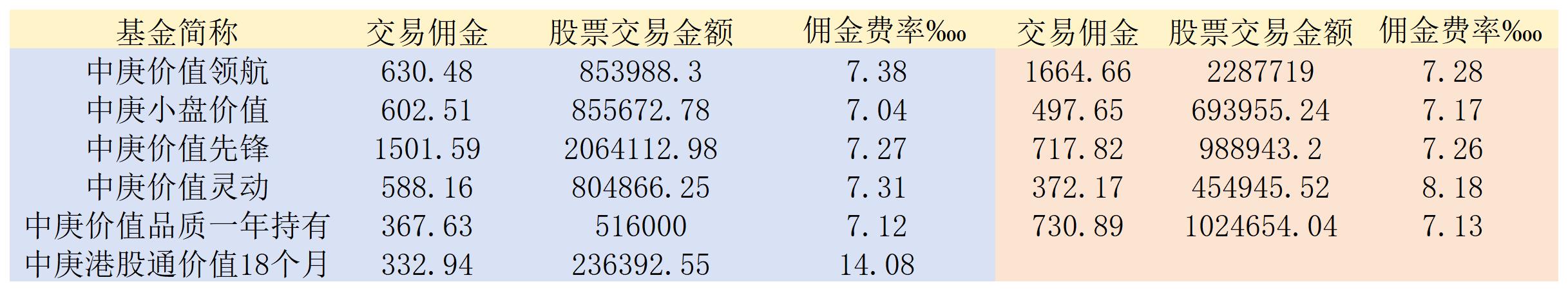 具體來(lái)看,中庚價(jià)值領(lǐng)航今年上半年支付給券商的傭金費(fèi)為630.48萬(wàn)元,相比85.39億元的股票交易金額,傭金費(fèi)率約為7.38?;而去年同期,基金支付的傭金為1664.66萬(wàn)元,股票交易金額為22.88億元,傭金費(fèi)率約為7.28?。