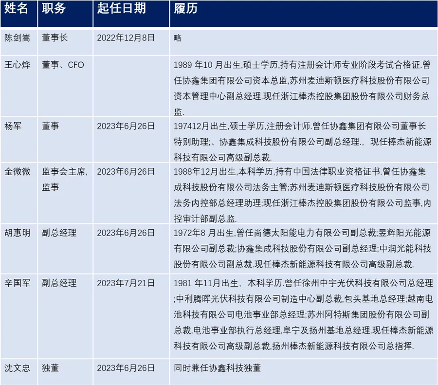 從履歷看,陳劍嵩遠不是光伏行業(yè)大神級的人物。他也并非技術(shù)背景,他拉過來的協(xié)鑫舊部,也基本是管理崗人員,并沒有核心技術(shù)人員或工程師。真正與業(yè)務(wù)線比較接近的只有胡惠明、辛國軍兩位,而后者在加盟棒杰時也均系管理人員。