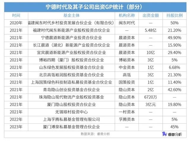 在汽車(chē)產(chǎn)業(yè),投資版圖最大的或許要屬寧德時(shí)代。根據(jù)公開(kāi)數(shù)據(jù)統(tǒng)計(jì),截至目前,寧德時(shí)代及其子公司出資GP超10家,出資額已超30億;寧德時(shí)代作為投資主體,參投事件數(shù)百起左右;其私募股權(quán)投資平臺(tái)晨道資本參投事件同樣超百起。一個(gè)投資“帝國(guó)”的雛形,已漸漸成型。