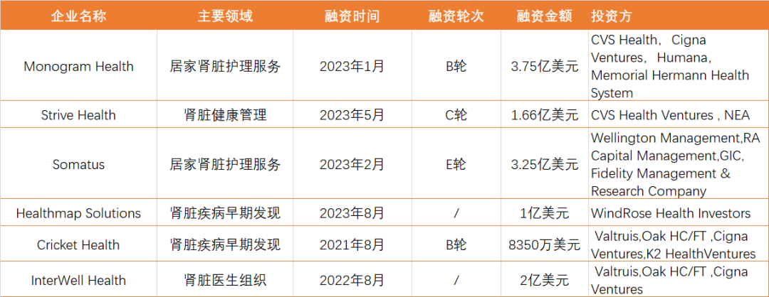 海外腎臟護理領域相關融資