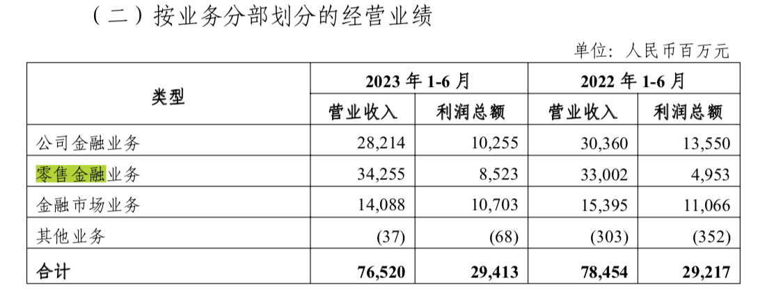 值得關(guān)注的是,上半年,光大銀行零售金融業(yè)務(wù)貢獻(xiàn)利潤8523億元,同比增長約72%。