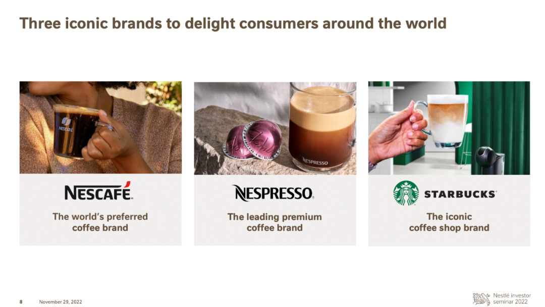 目前,該集團(tuán)旗下的三大咖啡業(yè)務(wù)均已進(jìn)入中國市場:售賣咖啡機(jī)和膠囊的濃遇咖啡(Nespresso)、包含即飲和速溶等產(chǎn)品的雀巢咖啡(Nescafé)、從星巴克處收購回來的品牌零售和餐飲服務(wù)業(yè)務(wù)。