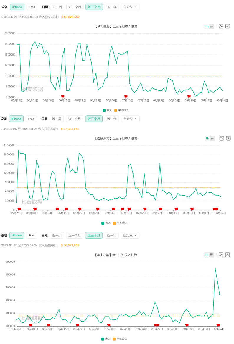 但這6款游戲中,《逆水寒》和《巔峰極速》上線于今年6月,《全明星街球派對(duì)》今年5月才開(kāi)始內(nèi)測(cè),8月才正式上線。這三款游戲能夠貢獻(xiàn)的營(yíng)收還沒(méi)有表現(xiàn)在財(cái)報(bào)上,所以真正支撐網(wǎng)易游戲收入大頭的,應(yīng)該是還是《夢(mèng)幻西游》、《蛋仔派對(duì)》和《率土之濱》。而這三款游戲中,占收入大頭的《蛋仔派對(duì)》和《夢(mèng)幻西游》在6月份之后都有一個(gè)明顯的收入下滑趨勢(shì)。