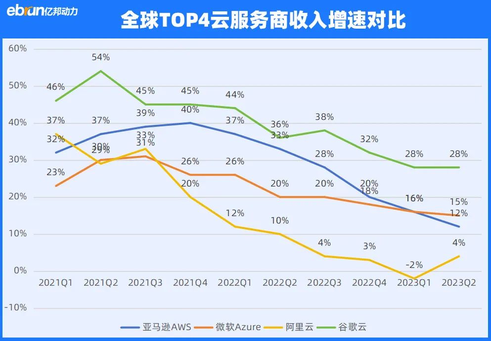 反觀緊隨其后的谷歌云仍保持近30%的增長(zhǎng),極有可能取代阿里云占據(jù)全球云廠商第三的位置。