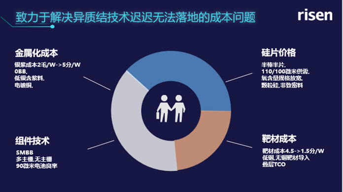東方日升異質(zhì)結(jié)事業(yè)部總經(jīng)理?xiàng)畈ㄅe例說(shuō):“降低金屬化成本為例,東方日升異質(zhì)結(jié)團(tuán)隊(duì)通過(guò)0BB技術(shù)、低銀漿料、電鍍銅等多種手段,看到了將銀漿成本從之前2毛/W降至5分/W以下的巨大可能。”